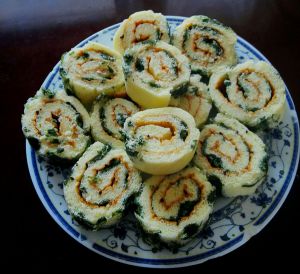 有点微热时卷起,海苔面朝外定型,切开就可以享用了