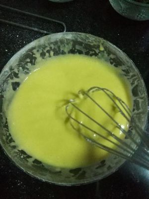 蛋黄蛋清分离分别装在无油无水的干净盆里。蛋黄,油,盐,牛奶,混合均匀无浮油状筛入低粉,用蛋抽画Z字轻柔混合成面糊无干粉就可以了。