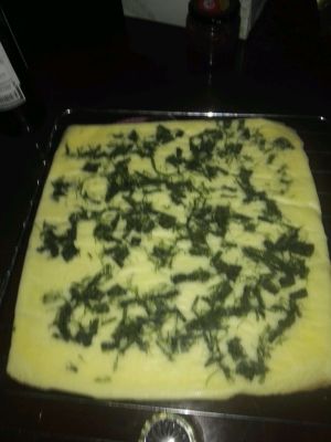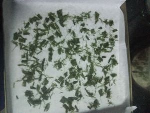 烤盘放油纸,上撒海苔。烤箱预热180℃。