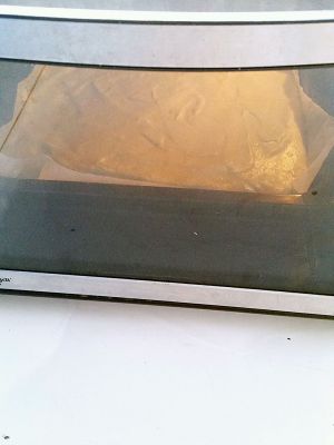 拌好的面糊倒入铺有油纸的烤盘放入预热好的烤箱120度烤30分钟