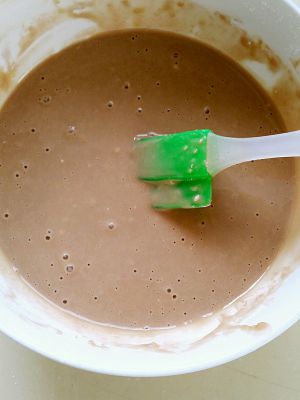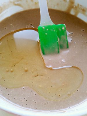 拌好的面糊加入玉米油再次翻拌至无颗粒状态