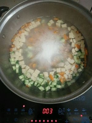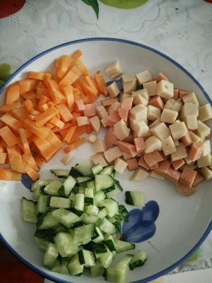 把萝卜 黄瓜 火腿 切丁 用的两种火腿 备用