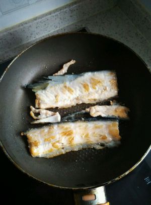 三文鱼骨在无油平底锅内煎香,略有焦黄即可
