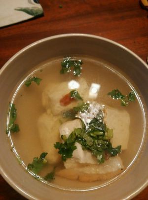 因为是高压锅所以没有变白,如果是砂锅就会变成白汤啦。撒点香菜,胡椒,盐调味就好啦
