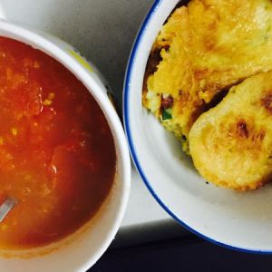 再快手弄个番茄汤下糖,这样配上土豆饼。就又是简单的一人食啦,早餐来的其实(/ω\)
