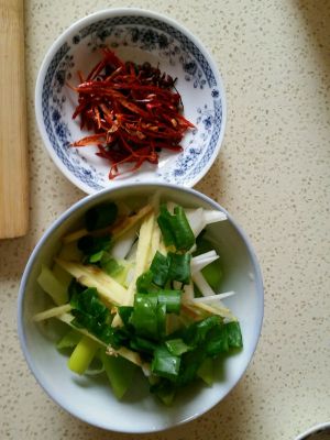 烧水煮蚬子时准备调料,葱、姜切丝,蒜切片