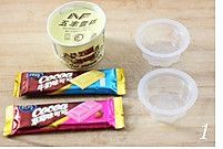 冰淇淋一盒,牛奶、草莓巧克力各一块,果冻模两个;