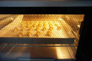 晾干的过程有点麻烦,咱们常做烘焙的,家里都有金属烤架,做好一个,就慢慢放在烤架缝隙里。