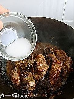 放少许盐。加适量水,盖锅盖焖三十分钟。