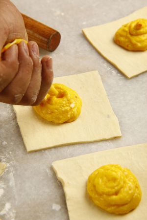 挤上南瓜馅。