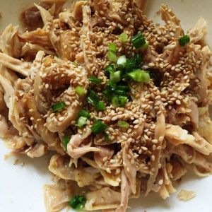 把鸡肉丢进饭煲,按煮饭,调制就可以啊