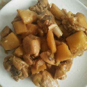 鸡腿剁成小块,土豆切小块,大葱切条,姜蒜切末。