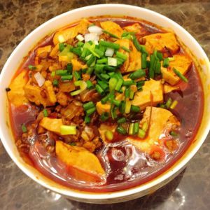 5.将滤过的花椒在煮的豆腐里涮一下,为了让豆腐有花椒香