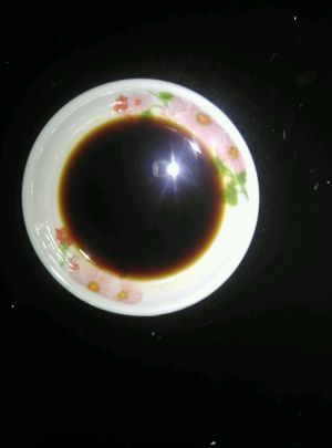 整一个豉油碟,倒入生抽,少许熟花生油,沾秋葵吃