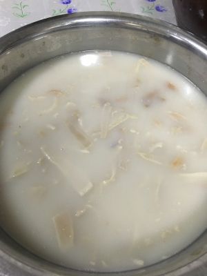 最麻烦的步骤,去掉肉皮上的肥油,约干净越好,切约0.5公分宽的小条。放入肉片3倍的水,加黄酒,煮开,撇去血沫。加入花椒,大料,葱姜,大火盖盖儿煮一小时左右。期间要偶尔搅动防止糊锅,尤其后面汤汁浓稠了要多搅拌。