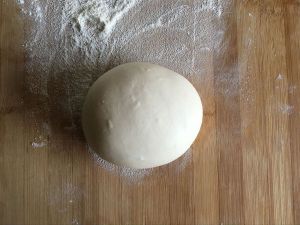 500克面粉里加入约230克左右的清水揉成面团,盖上保鲜膜醒30分钟。然后取出面团继续继续揉2分钟左右。
