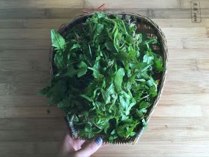 荠菜清洗干净沥干水分2斤的量。荠菜里泥沙比较多,要多清洗几遍,彻底清洗掉荠菜里的泥沙。
