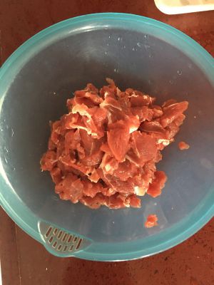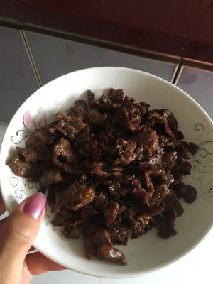 热锅下油,下牛肉加点点料酒,炒几下加生抽翻炒加盖焖至牛肉收汁