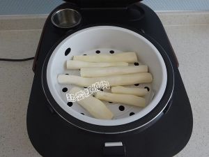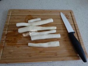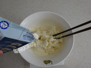 蒸好的山药放在保鲜袋里用擀面棍擀成山药泥。
