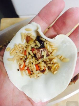 糯米提前浸泡水中要至少三个小时以上才行,捞出控干水份备用。