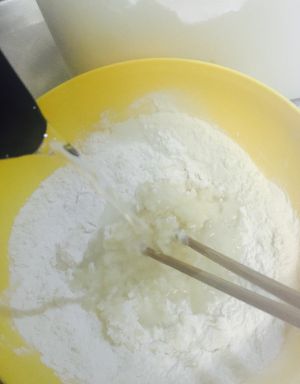 将面粉加入适量的温水和成面团,放在一边醒二十分钟左右。