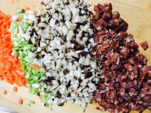 将所有用的材料放在一起,加入调味料拌匀备用。