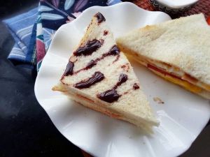 最后上场的是小朋友爱吃的炼乳 给小朋友的那份三明治 我又做了个迷你版的 配料没那么多 够他吃完