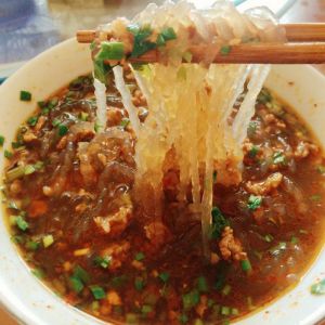 煮好后捞入碗中,再加入事先炒好的肉末杂酱(只要是杂酱都行,但是我觉得配酸辣粉还是肉末炒的杂酱好吃)然后就完成啦~根据自己的口味添加辣椒和酸醋就行.