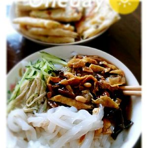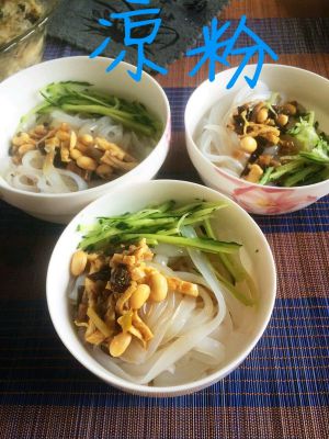 也可用鸡蛋西红柿卤调味儿,或直接用调料调制。但最精典的凉粉卤还是上面我详细介绍的香茹,木耳,金针,黄豆,鸡蛋丝儿卤。