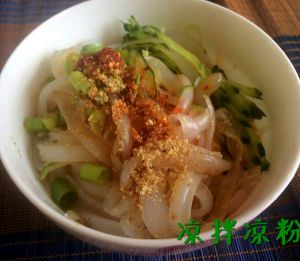 细腻筋道润滑的凉粉和外酥里软的葱花烙饼是绝配。