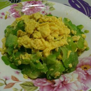 锅里放油烧热倒入蛋液快速翻炒至七成熟,盛出待用。