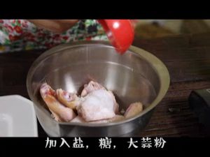 鸡翅放入到干净的盆里,加入盐,糖,大蒜粉