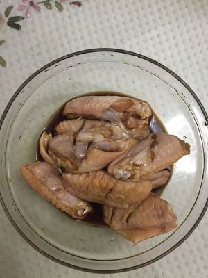 鸡翅背部两面各划两刀,放入味极鲜和食盐腌制1小时以上