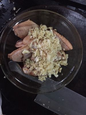 姜末蒜蓉跟鸡翅一起搅拌腌制