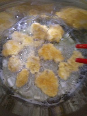 把弄好的鸡胸肉放入锅内油炸