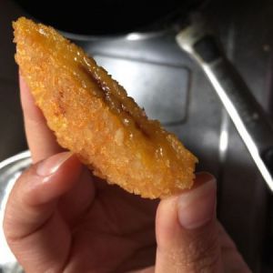 收口然后放掌心里拍扁,放面包糠里滚一滚,弄了太多一次吃不完可以把生胚放冰箱冷冻,以后想吃随时可以拿出来一炸。