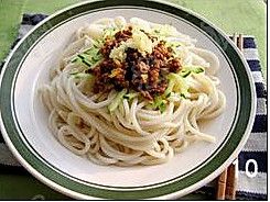 撒些黄瓜丝,加勺肉酱,再来点儿蒜末