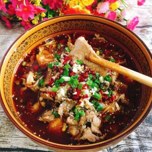 下入肉片,颜色变白,肉片打卷就是熟了!