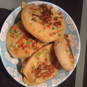 把蛋液缓缓倒在馒头片上 等两分钟蛋液渗透凝固一下 翻面继续煎两分钟左右就出锅了