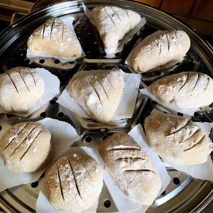 面团一醒至二倍大,揉面排气分成等量的面剂,我没有食物称全靠感觉,我分出来19个。擀成面皮加入内馅,弄出自己想要的形状,用小刀再划三刀,上锅二次醒发15分钟。