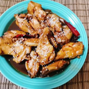 烧热水,水开后放入姜片和鸡翅,水微开后撇去浮沫,鸡翅盛出备用