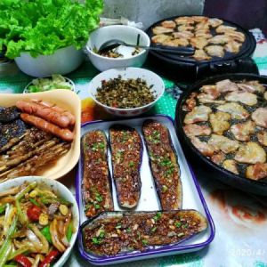 蒜蓉烤茄子加铁板烤肉