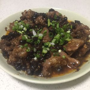 泡好的排骨把水挤干,加入除葱和玉米淀粉以外的所有调味料抓匀码味二十分钟