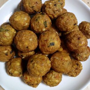 把胡萝卜擦丝,干蘑菇提前泡水,然后剁碎末,包菜切丝,烧水烫一分钟捞出,把水分挤干,五花肉剁成泥,把豆腐捣烂,把所有材料都拌一起,锅里放油烧热大概起小泡了,开小火,用勺子挖成一个圆球开始炸,炸至飘起金黄色就可以捞出控油。