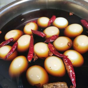 煮好的鸡蛋过凉水然后打破蛋壳,越破越入味
