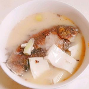 成品图(汤里放入豆腐会影响鱼汤的奶白程度,这个方式做,不加入豆腐,纯鱼汤会熬的非常白)