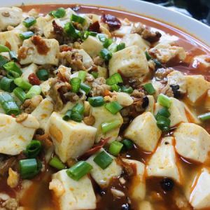 豆腐切成一厘米见方的小块,放入锅内焯水后捞出备用。