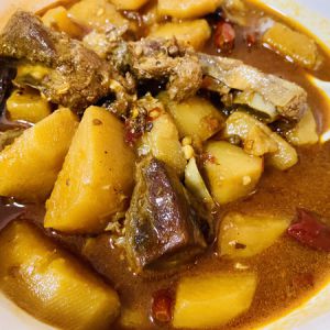 45分钟之后,放入土豆开大火烧开转小火焖20分钟再大火收汁即可