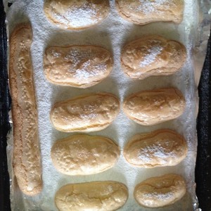 取一裱花袋将面糊倒入袋中再挤在铺有油纸的烤盘上