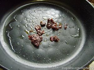 刚才煎豆腐的油倒出,余油加入郫县豆瓣炒匀炒香